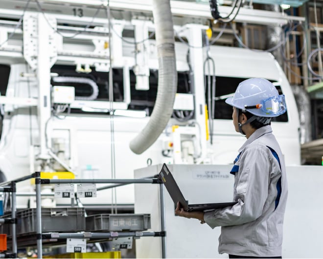 エンジニアの技術力岐阜車体工業が誇る製品品質は、生産現場を安定的・効率的に稼働させる工場技術職の存在がカギを握っています。彼らは工場の牽引役と言ってもいいかもしれません。現場の社員と日々コミュニケーションを取りながら、生産ラインや設備の改良・開発に取り組んでいます。
