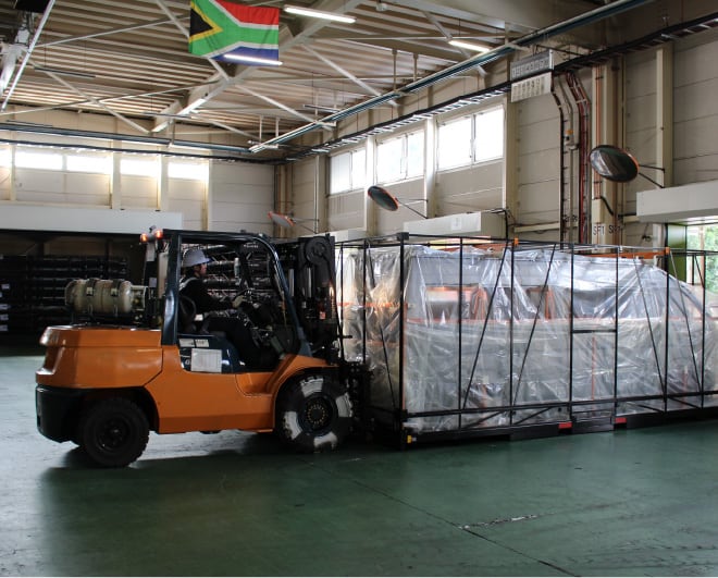 海外展開 (ノックダウン生産)ハイエースやコースターの海外市場拡大に合わせ、2013年から南アフリカやタイなどでノックダウン生産(日本で生産した主要部品を輸出し、現地で組み立てる方式)を展開。当社が培った「スリム・シンプル・ストロング」工場のノウハウを伝授しています。